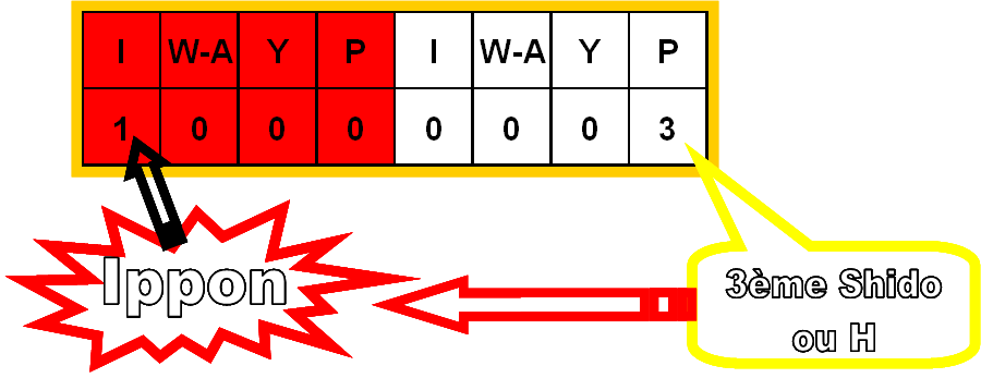HANSOKU MAKE est attribué à tout combattant qui a commis une infraction grave (ou qui a été pénalisé de 3 shido et commet une nouvelle faute légère.